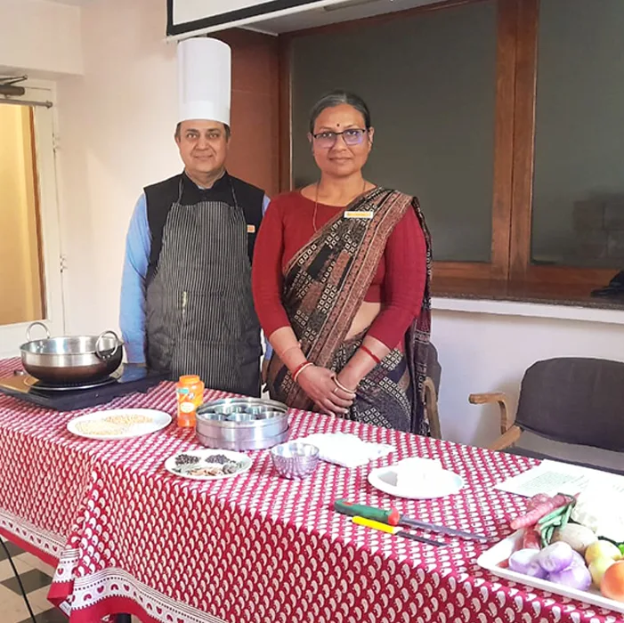 Pour cooking demonstration features dishes considered essential according to Ayurveda and prepared daily in Indian homes. Guests are welcomed into our kitchen, an area usually reserved for our staff, to learn about the menu of the day, explore the ingredients, and cook alongside our chef under their expert guidance, gaining hands-on experience.